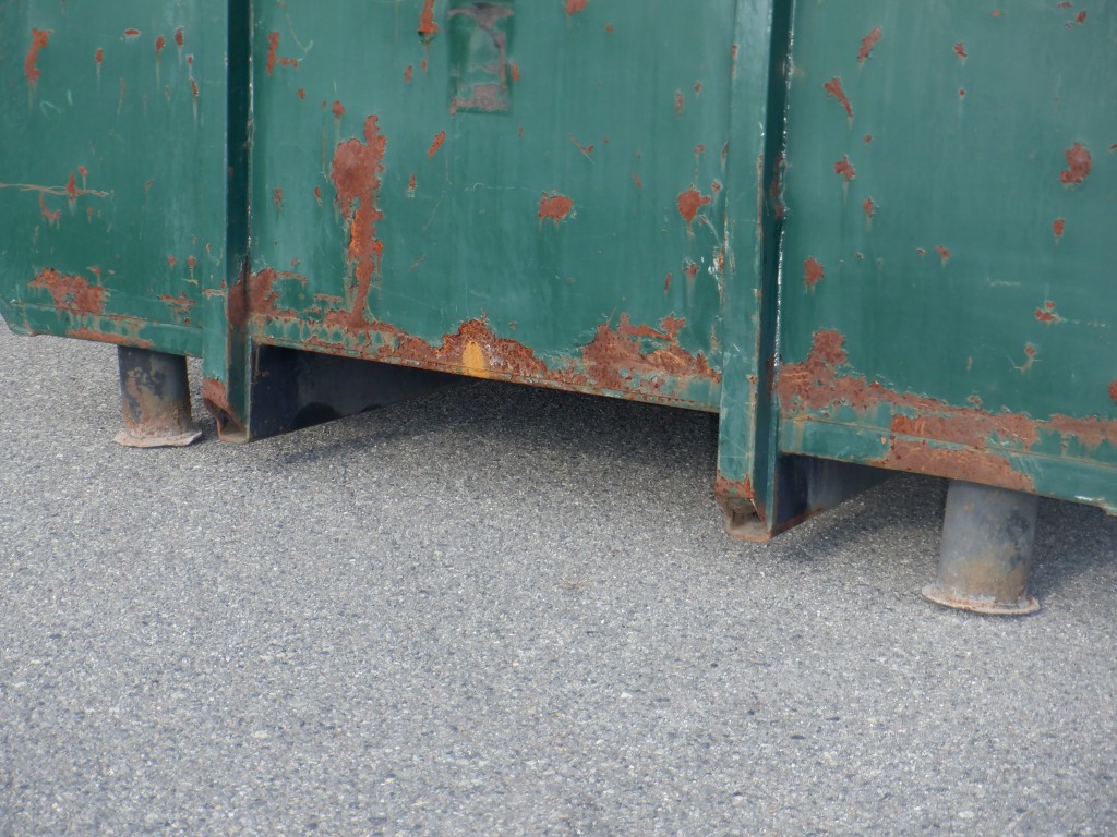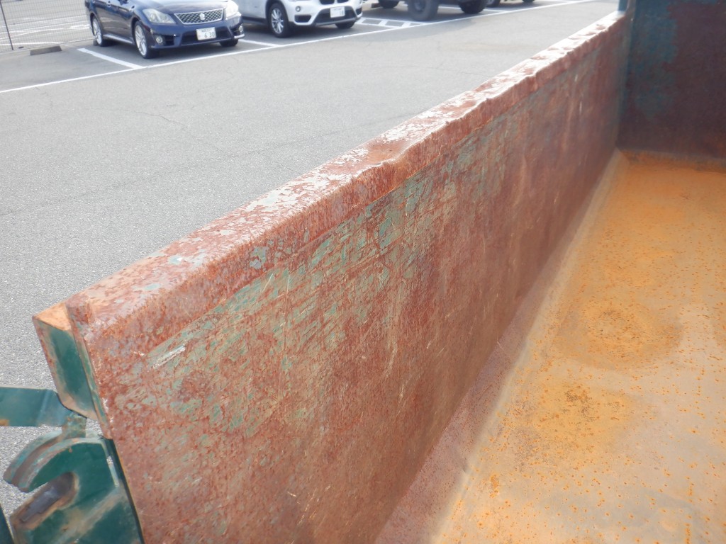 L3600×W1900×H900ミリ、T/G横開き、前スタンド左右曲がり有、T/G下部隙間有、床凹み有、錆傷・凹み多数有